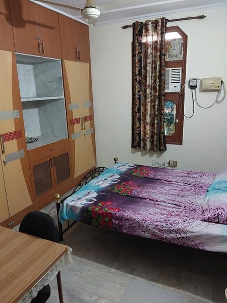 Exclusive accommodation for girls in Lajpat Nagar part I delhi. Well ventilated natural lighting, parking,piped gas chulha,wifi, fridge,RO, geyser, washing machine,maid to clean, almirahs, attached exclusive balconies, security camera, north facing,on main road. Metro ten minutes, bus stand five minutes, market, banks hospitals within minutes. Round the clock food delivery. Self cooking facility. Single room with big bed and two bedded room also available. 2 rooms are occupied by working girls,