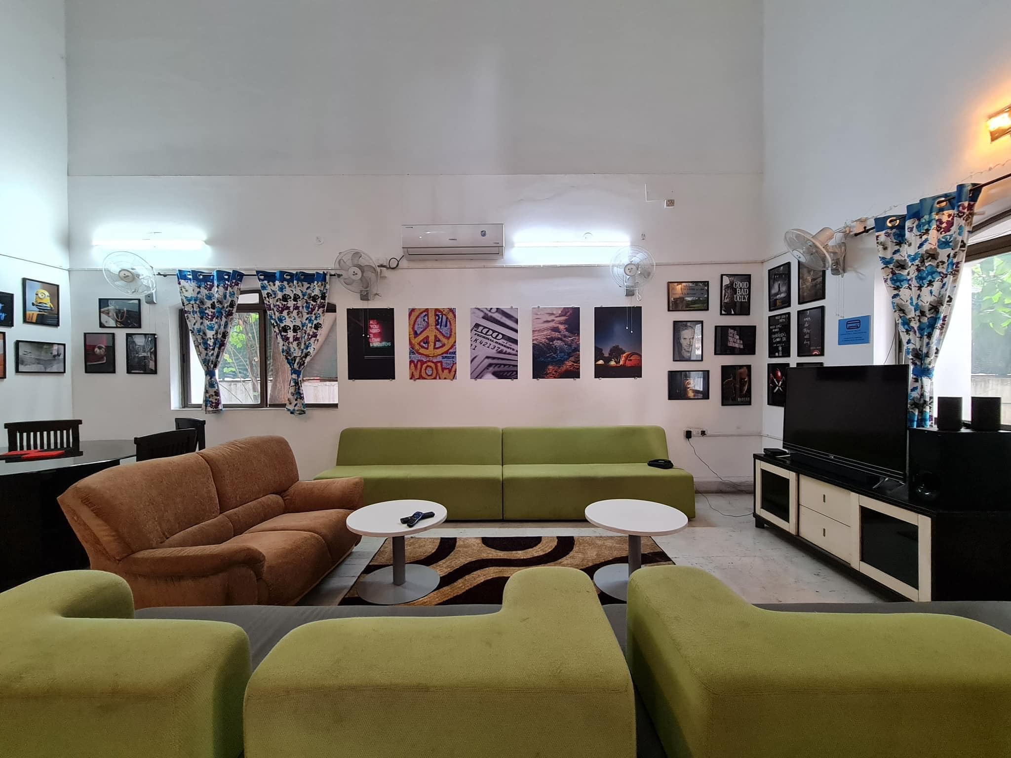 Large airy Bungalow, In-house Co-Working space, High speed optical WiFi, DTH, Daily Housekeeping, Biometric Main Door, Parking, Lounge and Garden.