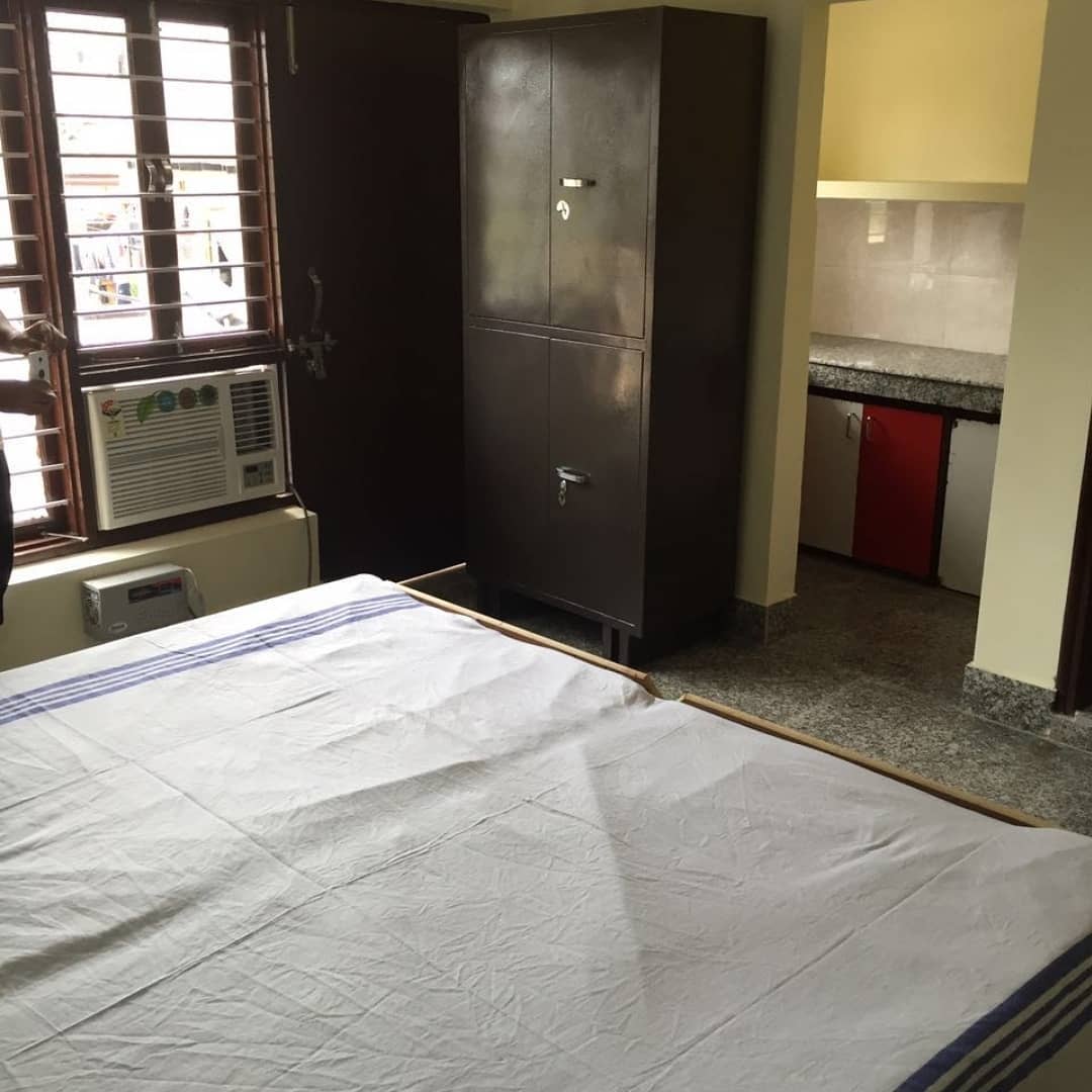Double Sharing PG Room with Attached kitchen & bath [ Including 3 Times 🟢 PURE VEG Hygiene Fresh Meals/Homemade Food, TV, Gyser, Washing Machine, Airconditioner/Window AC with 5 star ratings, IndividualAlmirah & Wardrobes and single Table-Chair, Balcony rooms, Single-Single 6×3 size Bed box with storage, Free Wifi with 5G speed and power Backup, Housekeeping, Repair & Maintenance, RO water purifier & Water Cooler, CCTV on each floor, 2 wheelers Parking Space also ]